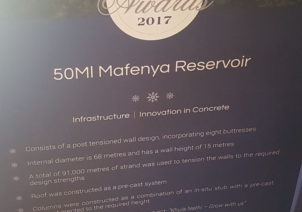 Corestruc’s pre-cast concrete systems have become synonymous with many successful reservoir projects in the country including the 50 mega-litre Mafenya reservoir that was recently showcased at this year’s prestigious Fulton Awards for Excellence in the Design and Use of Concrete.