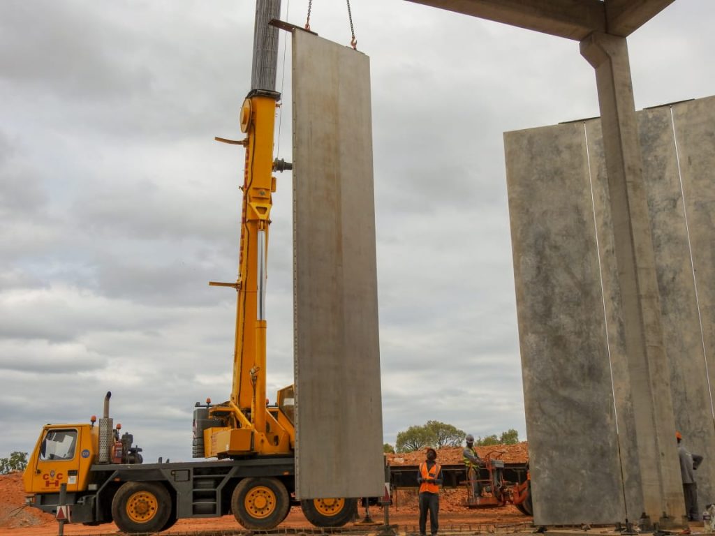 “They are being lifted and placed as they arrive by Corestruc’s team and, in so doing, negating many of the challenges associated with building these walls using conventional cast-in-place techniques. This includes the establishment of tonnes of formwork and co-ordinating the various teams, counting the steel fixers, shutter hands and concrete gangs, on site,” Bezuidenhout says.